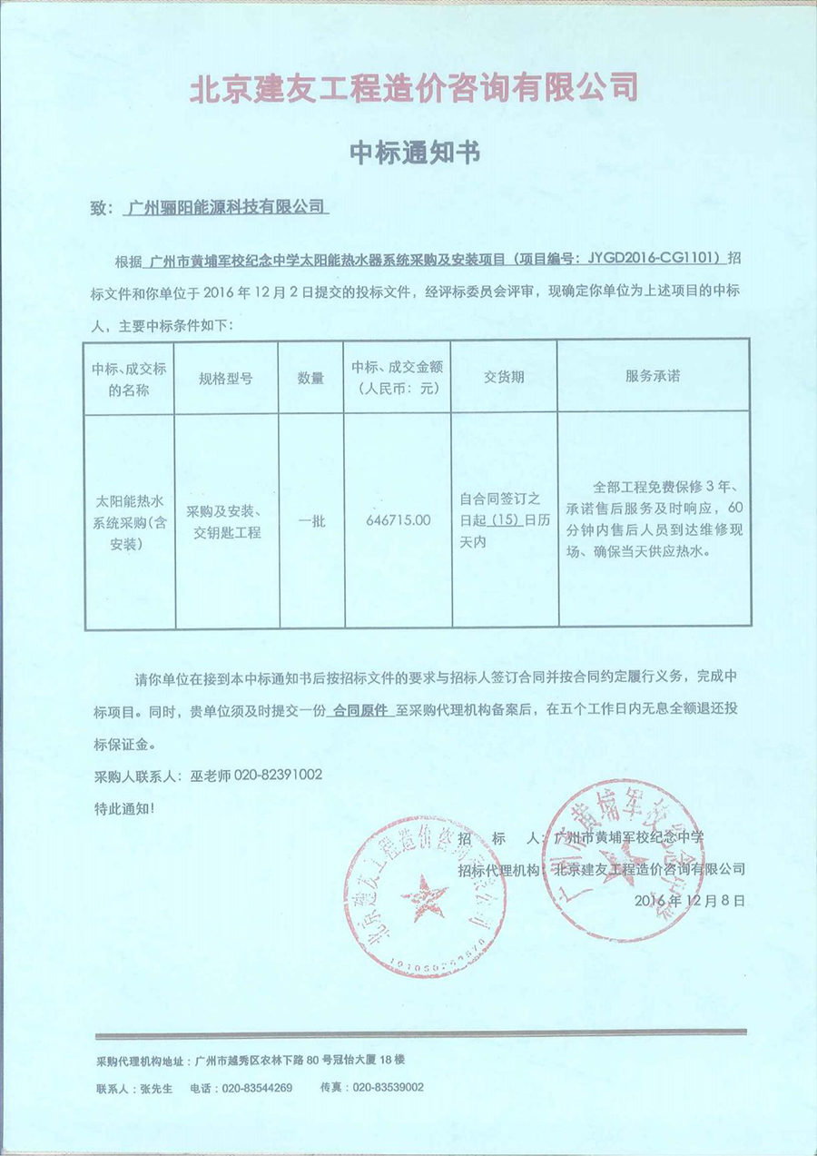 廣州市黃埔軍校紀(jì)念中學(xué)太陽能熱水器系統(tǒng)采購及安裝項目